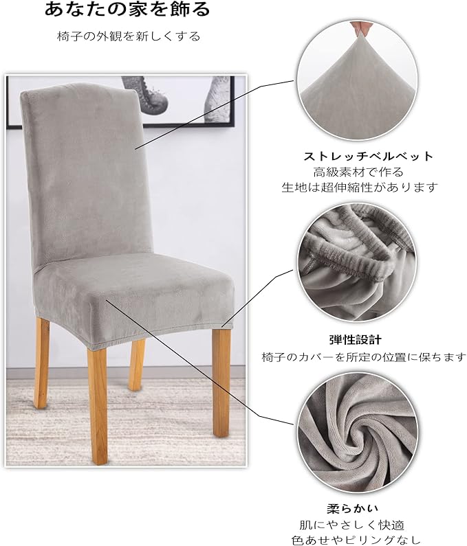 TIANSHU フランネル 椅子カバー, チェアカバー 伸縮素材 ストレッチ ふわふわ 家庭・ホテル用 ウェディング・結婚式・パーティーなど対応 取り外し可能 洗える (2枚,ライトグレー) | etshop