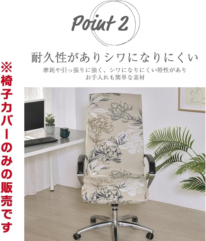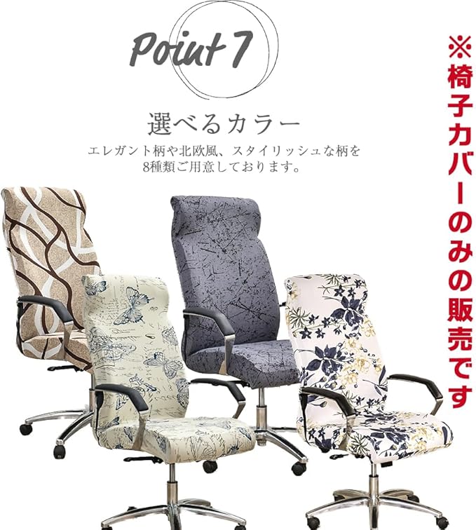 オフィスでご使用の椅子、ご自宅でのPCチェアーに汚れやシミはついていませんか? 猫ちゃんを飼われているおうちですと、破けてしまっていたりしませんか? 職場ですと、椅子は先輩上司からのお下がりということはよくありますよね シミや汚れ、破れ、お下がりなどのお悩みは、椅子カバー(チェアカバー)で解決! 上からかぶせるだけの簡単な作りとなっているので、サイズがあえばどなたでもお使いのお椅子にカバーすることができます。 古かった椅子が、あっという間に清潔感のある新品のような椅子に早変わりです! 伸縮性があり、防水加工もしてあるので、安心です。 また汚れてしまった時には、サッと取り外ししてお洗濯して頂けます。 季節ごとにチェアカバーを変えて頂くと気分転換になりオススメです。 オフィスチェア、デスクチェアー、ゲーミングチェアー、パソコン椅子カバー、PC用椅子カバーなどにご使用頂けます! ※椅子は付属しません。カバーのみの販売となります。