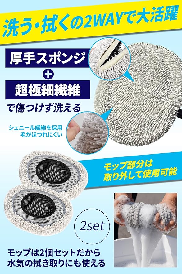 【簡単お手入れ&交換モップヘッド付きで衛生的】使用後はバケツに沈めて軽くすすぐだけで汚れや泡を落とせるほか、取り外して手洗いや洗濯機での丸洗いも可能です。さらに交換用モップヘッドが付属しているため、常に清潔に保てて長持ち。経済的でコストパフォーマンスに優れた車用洗車ブラシです。