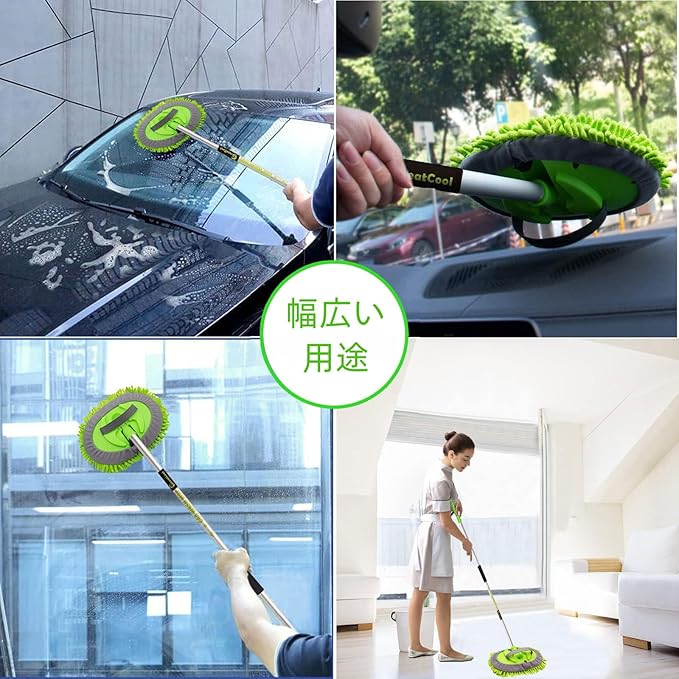 【幅広い用途】この洗車モップは、車の掃除、乾燥、ワックスがけ、ダスティング、研磨、または家庭の掃除に最適です。小型車、トラック、SUV、オートバイ、RV、ボートを洗うだけでなく、窓、ほこり掃除、天井のファン、屋外の小屋、子供用スライドなど、ほとんど全ての家庭用品に対応できます。