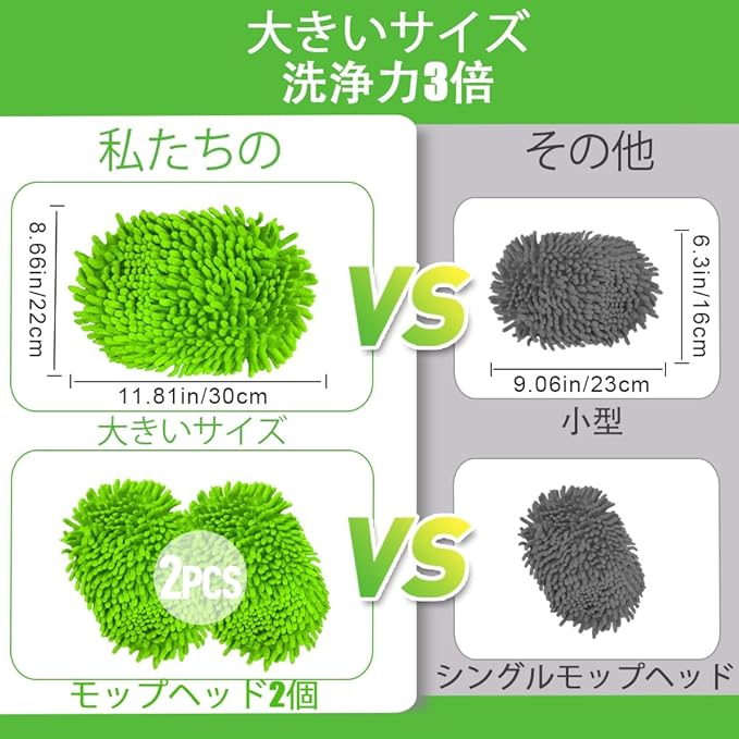 【ペイントを傷つけず、傷を付けない】モップヘッドは柔らかく、抜け毛がなく、水汚れや傷がつきにくく、塗料を傷つけずに、ほこり、汚れ、泡を簡単かつ迅速に取り除きます。そして、強力な吸水性により、車の掃除がより簡単かつ迅速になります。モップヘッドは再利用可能で洗いやすいです。濡れた状態にも乾いたにも適しており、完璧なサイズです。