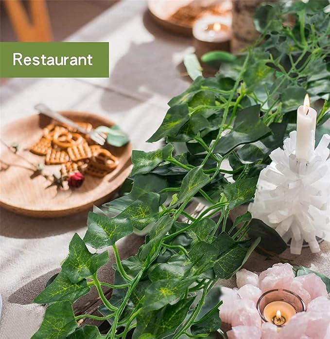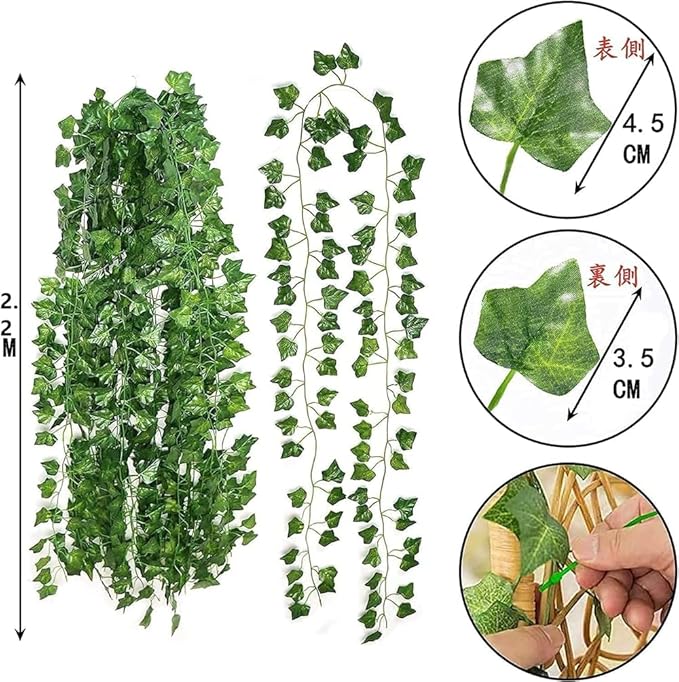 仕様概要:フェイクグリーンは24本入り、12本づつ束になって、長さは2.2メートルで、1本毎に約80枚の葉っぱは茎の左右に均一に分布しています。葉っぱは特別のハート形状で超可愛いです。何箇所に分けて使え、何本に合わせて飾り付けるとより雰囲気を出せます。材質:造花観葉植物の葉は絹の材質を採用して、光沢感を持ち、柔らかい手触りで、直径は1.4mmの茎はプラスチックで作られ、本物アイビーの生き生きする姿を再現します。細部まで心入れの作りで、葉落ち無く何度も使えて長持ちできます。造花アイビーは枯れない観葉植物、定期的に剪定は必要ありません、で水やり、掃除の世話が要らず、虫が寄り付かず。土がない室内にも四季にグリーンを楽しめ、忙しい方と植物の世話をすることに経験が足りない方に最適です。