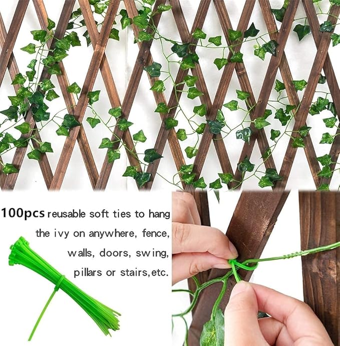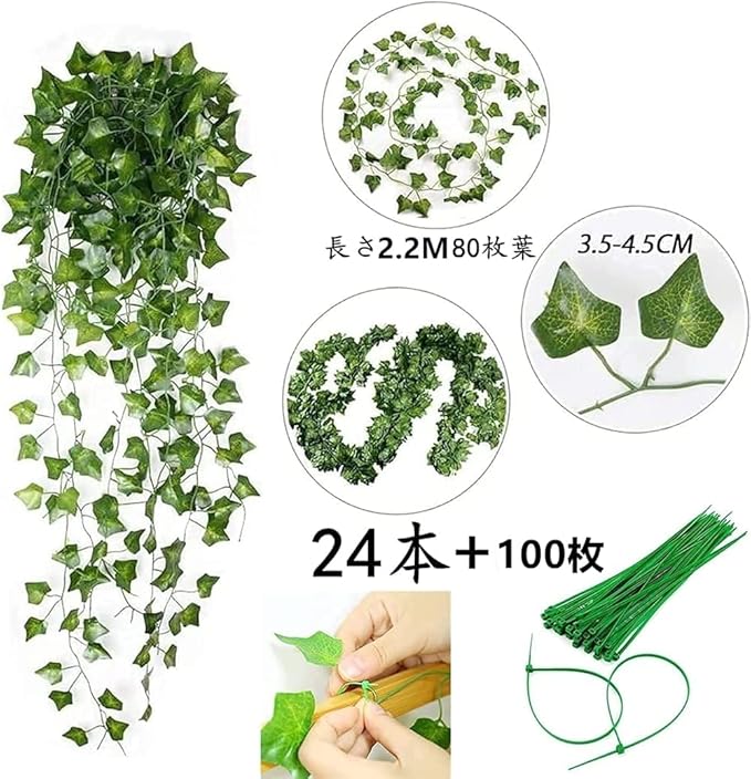 24本セット 2.2M 人工観葉植物 アイビー造花藤 結束バンド100枚付き フェイクグリーン 緑葉壁掛け吊りのインテリア 飾り 玄関飾り フェイクフラワー 人工植物枯れないグリーン | etshop