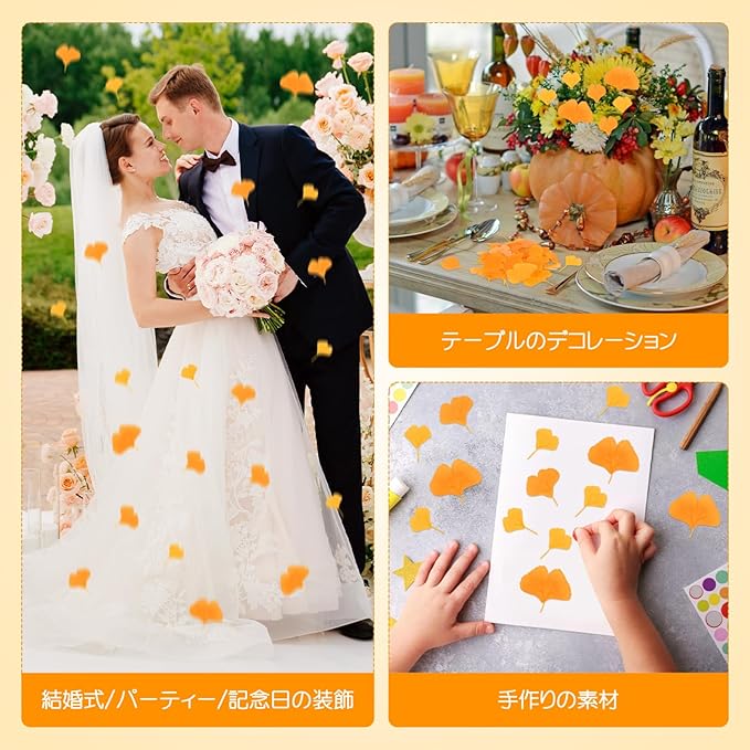 で無害:無害で無臭の材料から作られているため、これらのイチョウの葉の装飾はどんな環境でも に使用でき、家庭やイベントでの心配のない体験を します。