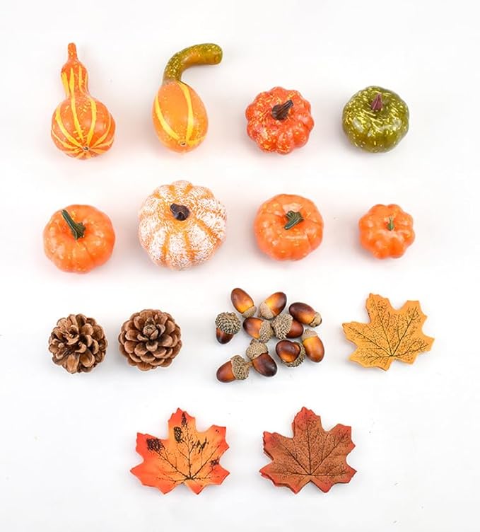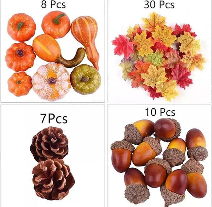 【お得な55個セット】カボチャ、紅葉、松ぼっくり、どんぐりなどの組み合わせは、秋の花輪を作るための理想的な材料であり、感謝祭の飾りやハロウィーンの装飾に最適です。