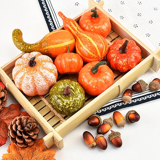 【DIYの楽しみ】あなたのニーズに合わせて、カボチャセットを自由に飾ることができます。例えば、それらを組み合わせたり、皿に配置したり、クリスマスリースに使用したりすることができます。これにより、子供たちと一緒に自由にアレンジし、DIYの楽しみを存分に楽しむことができます。