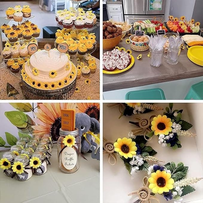 造花 ひまわりの花 花びら ミニ 花頭 100枚セット 花のみ フェイクフラワー 枯れない花 ミニ花頭 花輪 ヘアアクセサリー ウェディング ホームパーティー インテリア造花 撮影用 写真小道具 DIY花材 手芸用品 造花バルク 直径7cm | etshop