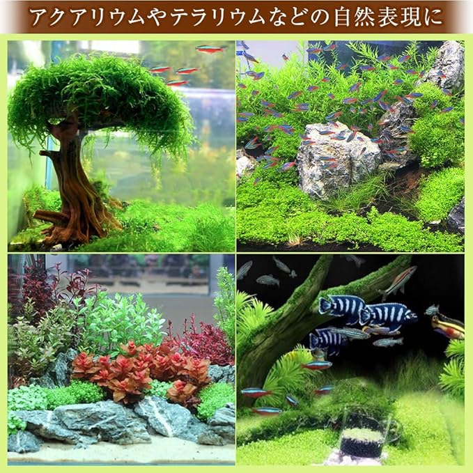 必要な分だけほぐして量を調節しながら使える人工苔です。敷いた際に表面がふんわりとした仕上がりになるためリアルな苔を表現できます。初めての方でも使いやすい100gでご用意致しました。