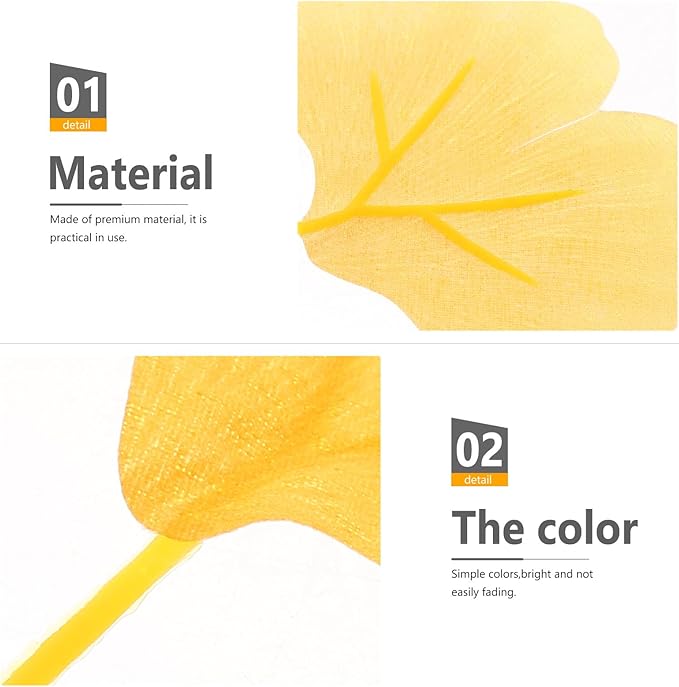 多用途: 人工イチョウの葉、フェイクシミュレーション、紅葉、紅葉テーブル散布、家の装飾、オフィス、レストラン、ウェディング、ガーデン、パティオの小道具、結婚式、写真撮影、家の装飾など、さまざまな機会に使用できます。