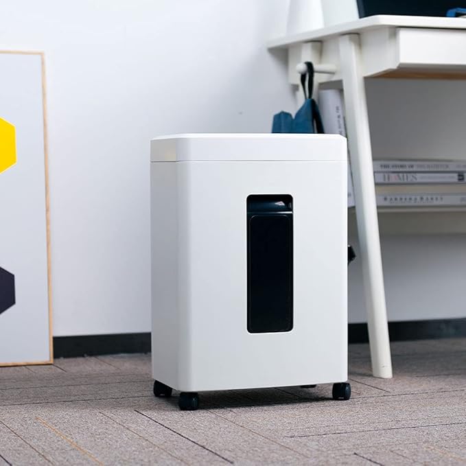 【強力な細断】iOCHOWシユレツダーは先端の細断技術が使用され、カットサイズは約4x10mmのマイクロカットタイプです。すべての文書が高速裁断できます。情報が読み取りにくく、重要情報の流出が防止できます。細密シュレッダーは出荷前に細断テストを行います。細断テスト後は細断くずの除去を行っていますが、カッター刃などに付着した細断くずが輸送中に落下し、ダストボックスや家用シュレッダー本体に残っている場合がありますので、あらかじめご了承ください。