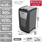 大量細断向けのクロスカット オートフィードシュレッダ。4桁の暗証番号でカバーの施錠が可能。自動細断最大300枚。細断カットサイズ:(紙類・プラスチックカード)クロスカット 4 28mm。