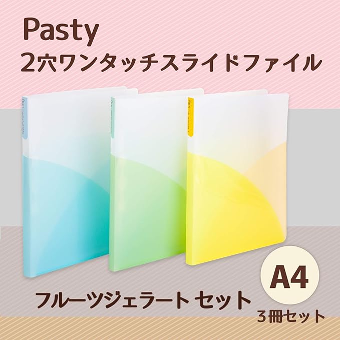 セット: ピンクジェラート3色セット/ タイプ: 2穴ワンタッチスライドファイル/ 穴数: 2穴