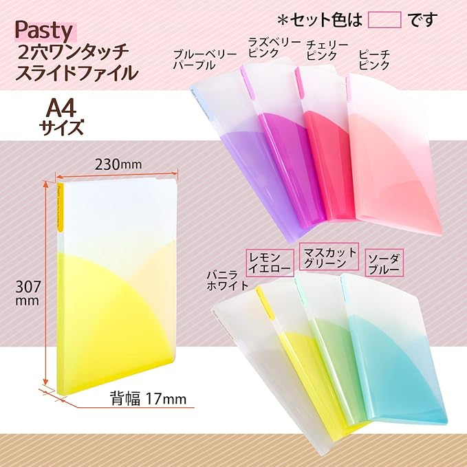 パステルカラーには、気持ちを落ち着かせる効果があるといわれ、「パスティ」は勉強用のファイルにおススメ。
