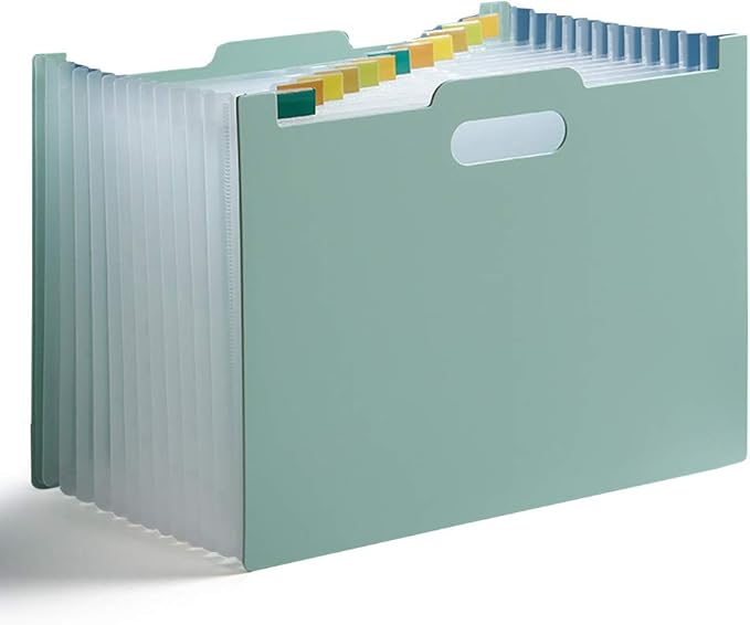 ドキュメントファイル 13ポケット A4 書類ケースドキュメントスタンド ファイルボックス オフィス 整理 書類 収納 自立型 (緑)