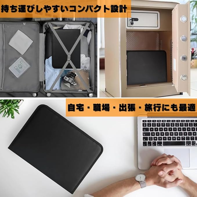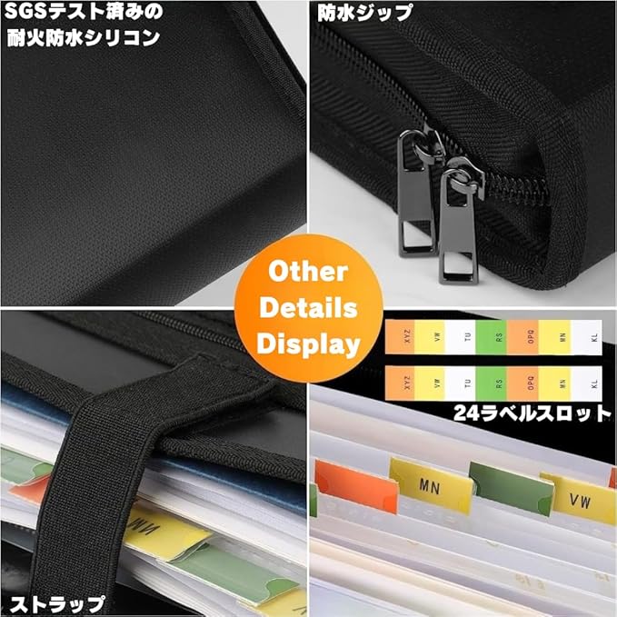 耐火 ファイルケース A4 書類収納ケース 13ポケット ジッパー付き アコーディオンフォルダー 耐熱 防水 防火 ドキュメントケース メッシュポケット付き 書類整理 大容量 ブラック | etshop