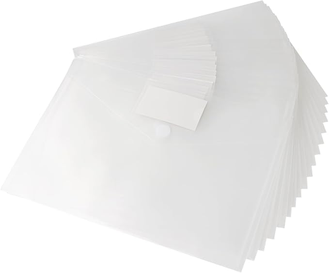 Happier 書類ケース 収納ケース ファイルケース ファイルホルダー クリアホルダー クリアファイルバッグ A4 封筒型 透明 タグ ポケット付き マジックテープ 横型 防水 (18枚, 透明) | etshop