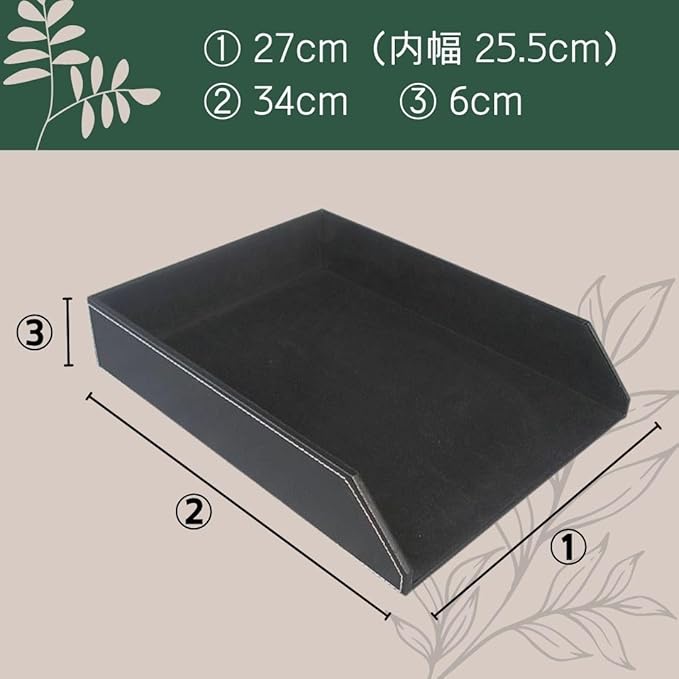 【収納力と安定感を両立】幅34 奥行27 高さ6cmでA4がゆったり入るサイズ感。重さ約750gでしっかりとした作り。
