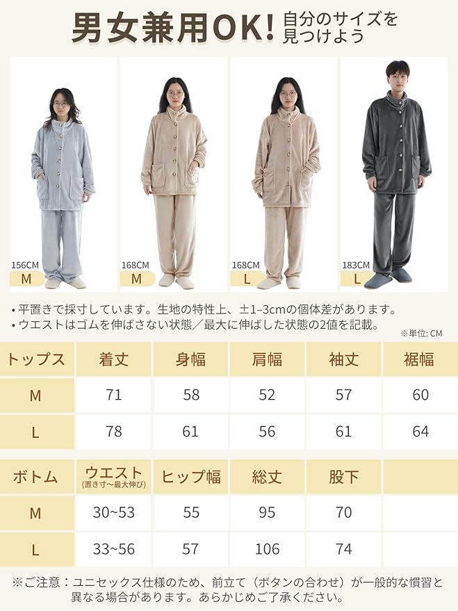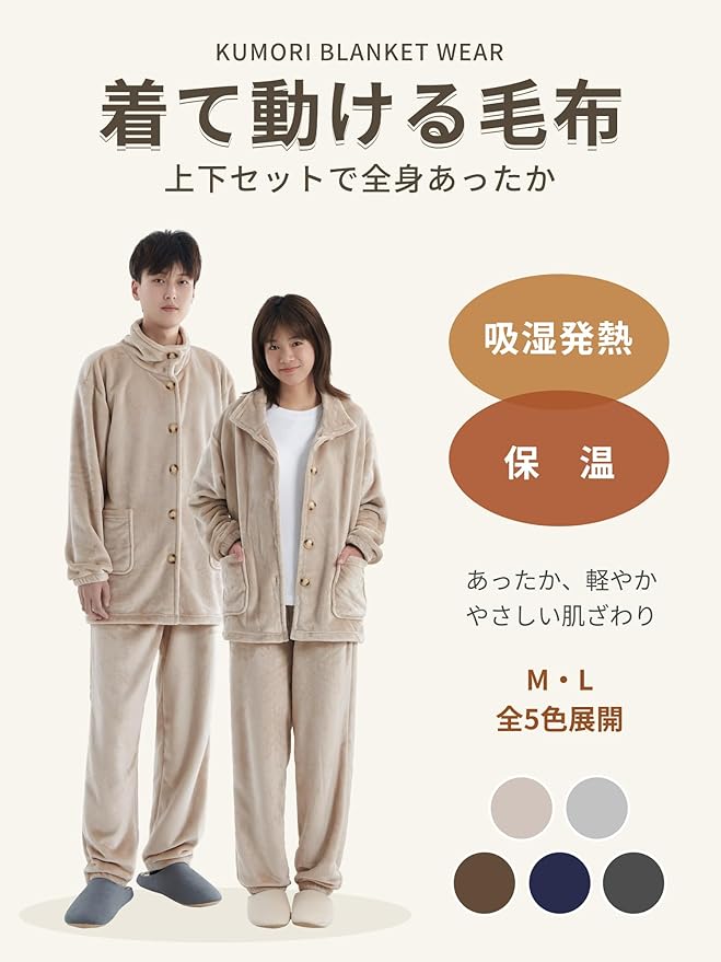 [クモリ] 冬 着る毛布 上下セット M ユニセックス 暖かい 男女兼用 フランネル ふわふわ 前開き ポケット付き ボタン付き ハイネック リブ袖 吸湿発熱 静電気対策 丸洗える ルームウェア 部屋着 あったか レディース メンズ 軽量 防寒 保温 パジャマ M ベージュ | etshop