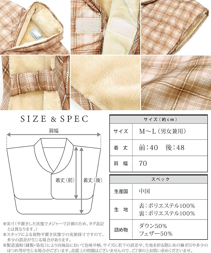 【男女兼用M~Lサイズ】着丈(前)40 着丈(後)48 肩幅70 cm 長めの後ろ身ごろで背中まであったか♪