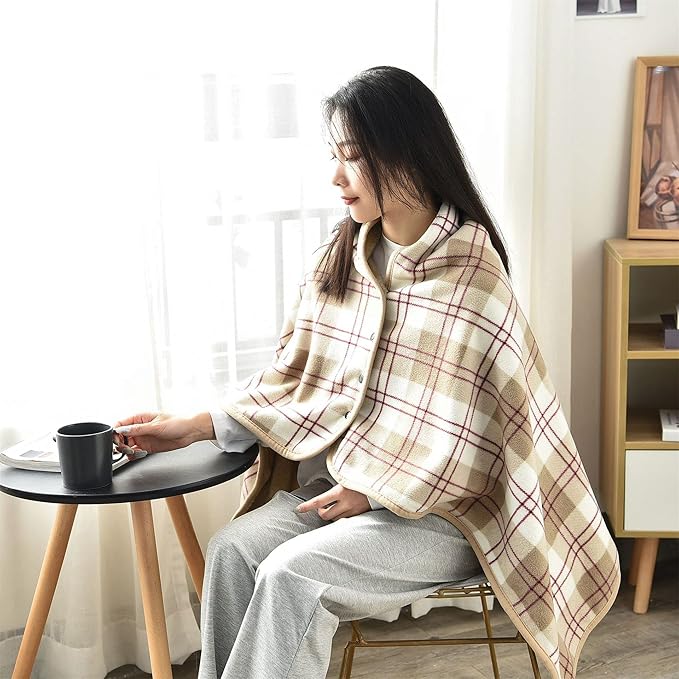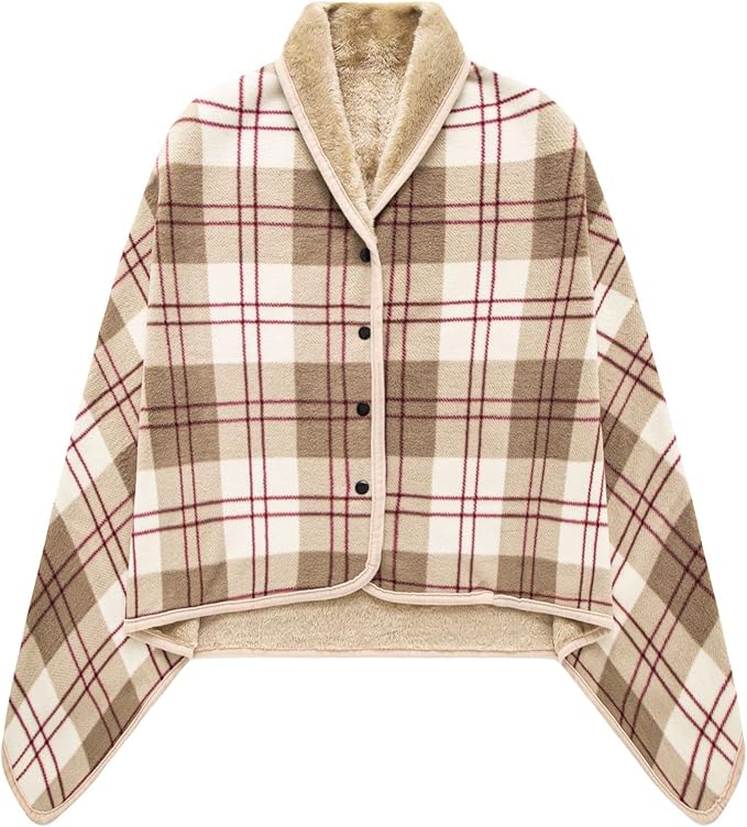 [LeafIn] ひざ掛け ブランケット ハーフケット 大判 4way 着る毛布 肩掛け ボタン付き 厚手 防寒対策 あったか チェック柄 おしゃれ 吸湿保温 抗菌加工 静電気防止 洗濯可能 手触り 暖かい | etshop