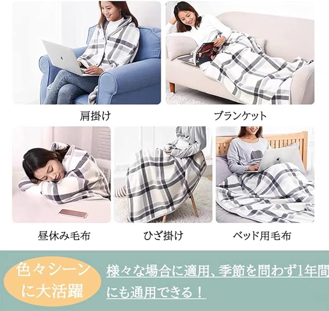 【4way 多用】ひざ掛け、ポンチョ風、巻きスカート風、ボレロ風、1枚で4通りの着こなしができる。※電気毛布ではありませんので、ご注意ください。
