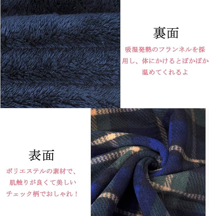 ★【両面デザイン&防静電・安心】表面:ポリエステルの素材で、美しいチェック柄といい肌触りです。裏面:吸湿発熱のフランネルを採用し、体にかけるとぽかぽか温めてくれます。電気ひざ掛けより安全、省エコ。ブランケットの表面に防静電剤を表面処理させることで、摩擦による静電気の発生を抑えてくれます。