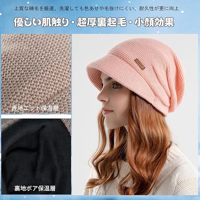 【やさしい肌触り】ニット帽は超厚の毛糸編み構造で温かく包み込み、柔らか起毛素材の裏地は心地よい気持ちに!型崩れしなく、綺麗なフォルムを実現できます。