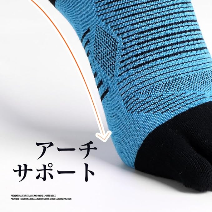 スポーツ用五本指ソックスは足の指がそれぞれ独立して動くので足の裏全体に効率良く力が入り踏ん張りが効くようになります。身体のバランスが安定すればパフォーマンスの向上に繋がるので、この動きやすさを好んで使用する方も多いです。