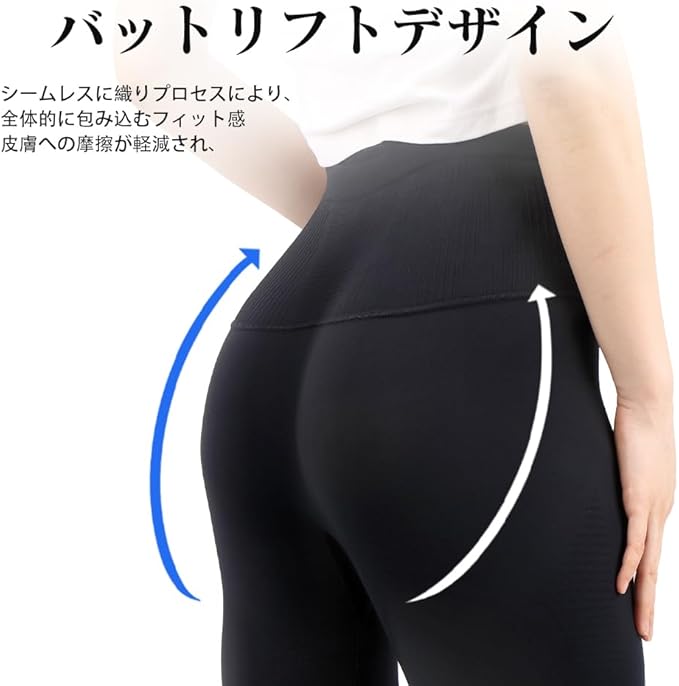 【快適】シームレスな一体化カットデザインにより、スポーツレギンスとして運動中の摩擦を最小限に抑え、より快適な着用感を提供します。