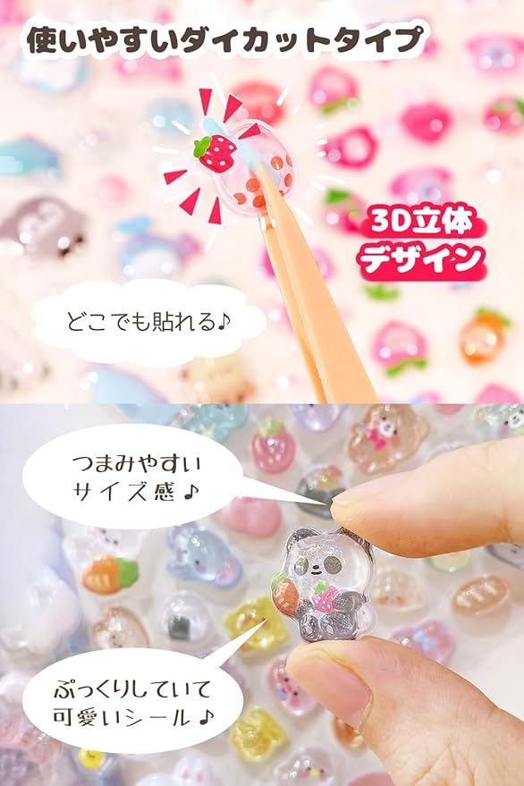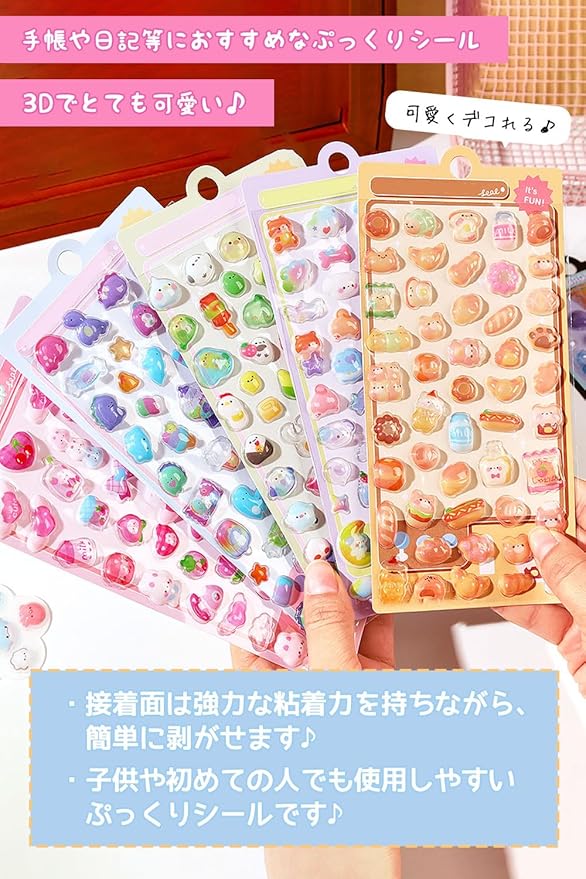【ポイント1 ぷっくりで可愛い】 3Dデザインが立体感があって可愛いシールです アニマル系から食べ物系まで、色々揃ったぷっくりシールです