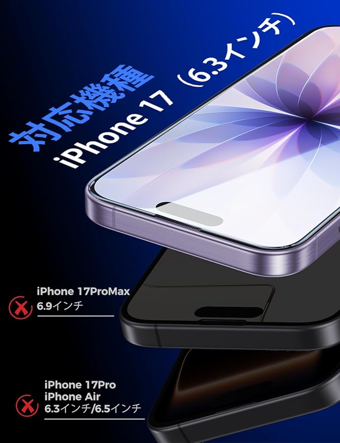 【もう失敗はしない】本製品は対応 iPhone 17に対応するガラスフィルム2枚セットです。百万以上の欧米ユーザーのフィドバックを集めて日々改善したガイド枠は、3歩だけで保護フィルムを貼り付けます。そのうえ、自動ホコリ取りデザインだけでなく、ガイド枠のスロープデザインで、空気を順序に取り除くことができて、初心者でも気泡レスのまま綺麗に貼れます。