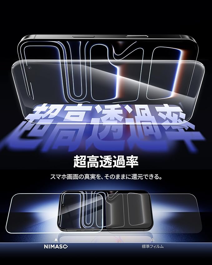 NIMASO ガラスフィルム iPhone 17 Pro用 強化ガラス 自動除塵 気泡レス 保護フィルム 貼り付け簡単 耐衝撃 指紋防止 ガイド枠付き 2枚セット いPhone 17 Pro対応(6.3インチ)DSP25F1685 | etshop