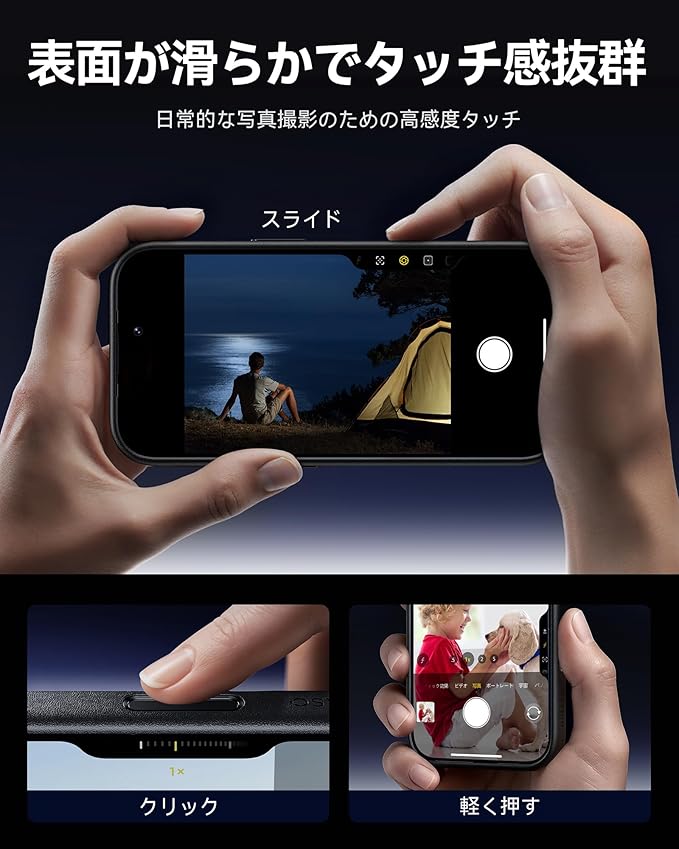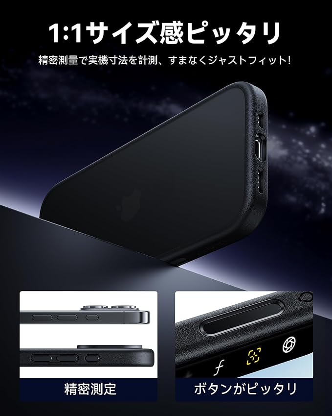 【半透明・マットな仕上げ】背面は耐久性や耐摩耗性に優れたポリカーボネート使用。表面には指紋防止ナノコーティングを施しており、指紋がつく心配もありません。マットな質感でサラサラした触り心地。背面は半透明でかっこいいリンゴロゴが見え、高級感が溢れたケースです。また、あいふおん 17 ケースはカメラコントロールカバー付き。iPhone17シリーズからのカメラコントロールボタンに対応しています。
