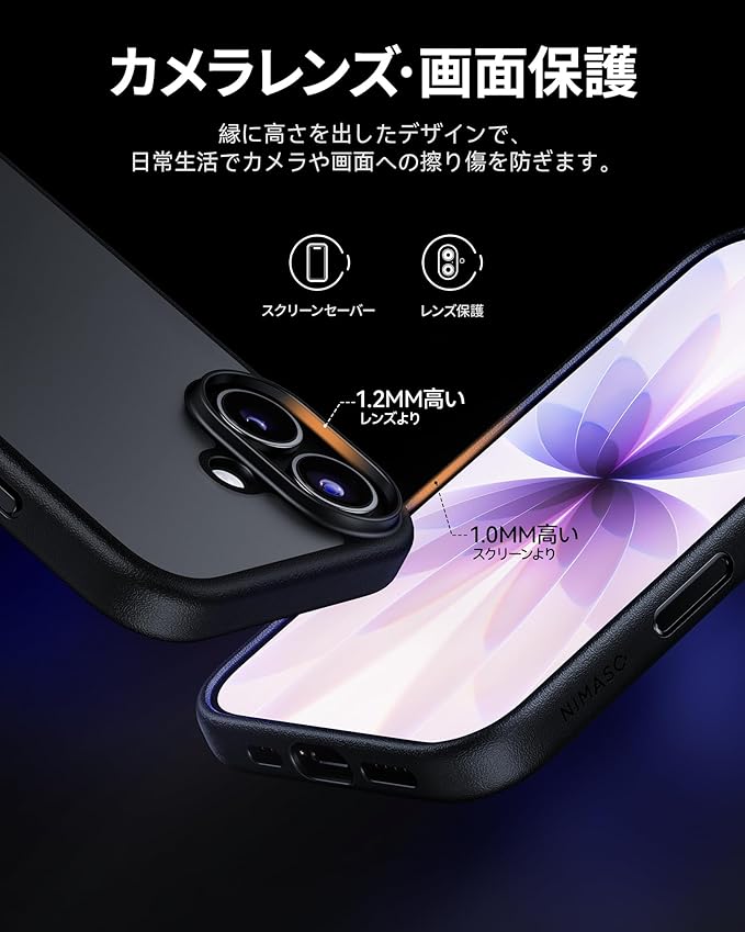 NIMASO iPhone 17用 ケース 滑り止め マット仕上げ 半透明 全面保護 iPhone 17 対応 カバー 耐衝撃 カメラコントロールカバー 米軍MIL規格取得 ワイヤレス充電 ストラップホール付き アイフォン17対応 (6.3インチ) スマホケース ブラック (黒羽シリーズ)NSC25F1620 | etshop
