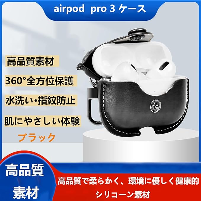 BOOLINN airpods pro 3 ケース 対応 airpods pro 3 高級本革 PUレザー エアポッズプロ3 ケース レザー 全面保護 充電 LEDライトが見える 耐衝撃 軽量 キズ防止 おしゃれ ワイヤレス充電対応 キーホルダー付き テクニクス カバー(ブラック) | etshop