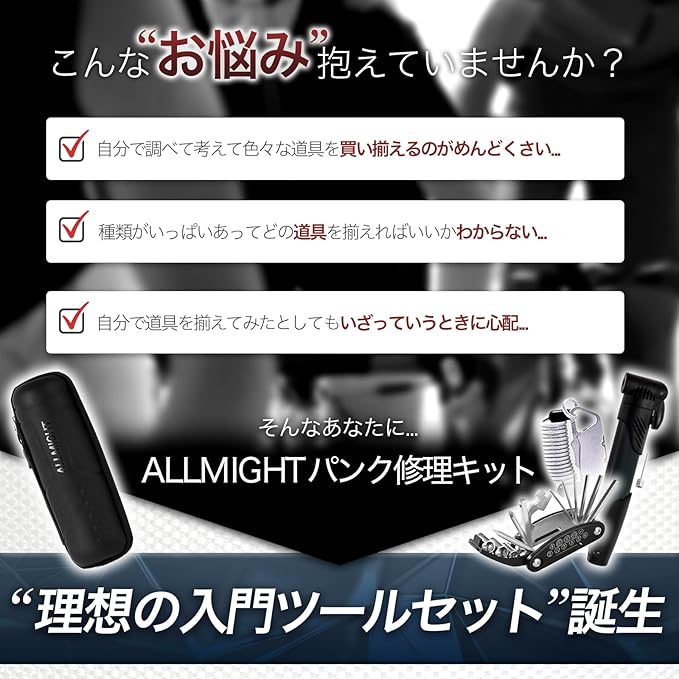 ALLMIGHT (オールマイト) パンク修理キット 入門ツールセット 【パンク修理マニュアル付属】 ロードバイク ツールボトル ロング ジッパーホルダー付 PU撥水性上質素材 止水ファスナー 自転車 | etshop