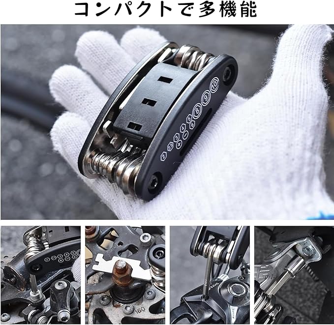 ♂️【16-in-1多機能修理ツール】六角レンチ(2mm/2.5mm/3mm/4mm/5mm/6mm)、ソケットレンチ(8mm/9mm/10mm)、プラスドライバー、マイナスドライバー、ソケット延長棒、フラットレンチ(8mm/10mm/15mm/14GE)など、日常の調整や緊急トラブルに幅広く対応。あらゆるライドを安心・安全にサポートします。