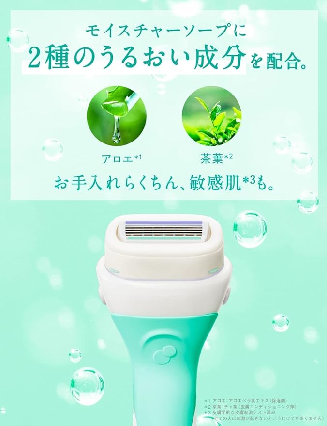 ・肌とリボンソープが濡れている状態で、なでるようにやさしく剃ってください。