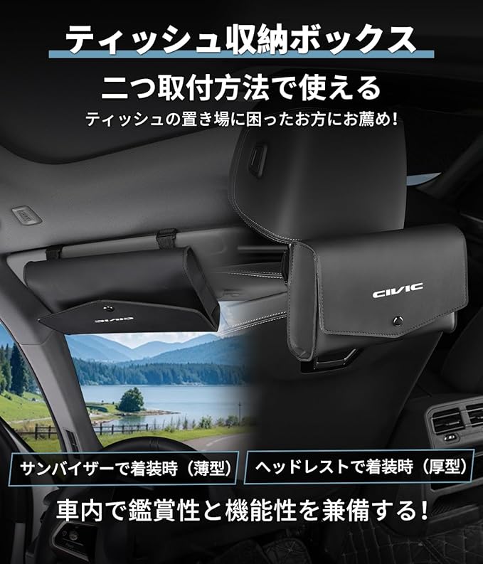 シビック 適用 車 ティッシュケース 厚型7CM 車用 ティッシュカバー CIVIC FL系 FK系 e:HEV EX RS LX 適用 蓋付き PUレザー サンバイザー/ヘッドレスト 取付簡単 ティッシュボックス 車内 カー用品 アクセサリー(シビック 適用,厚さ7cm) | etshop