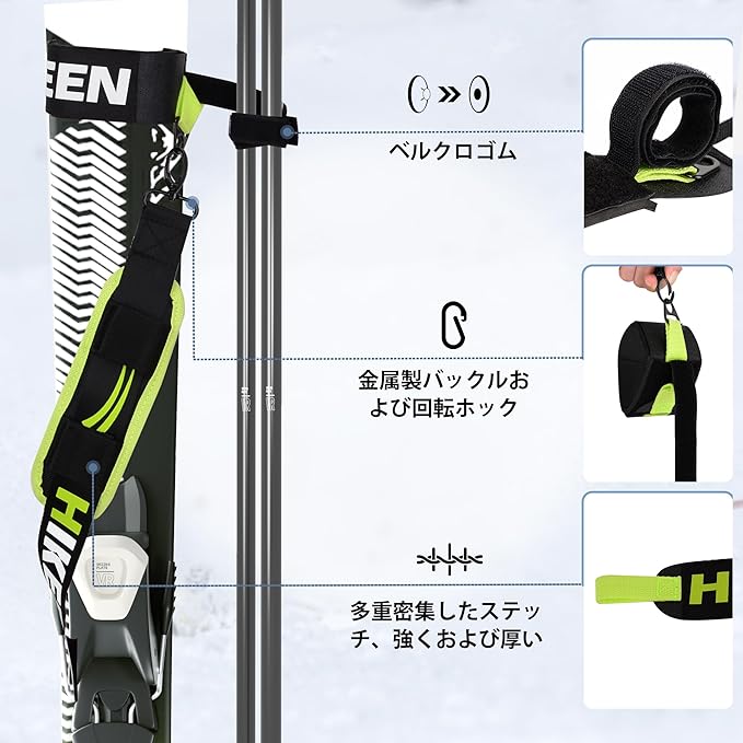 Hikeen スキー用具 ストック収納 スキー板 ショルダーストラップ付き 肩掛け 手提げ 長さ調節可能 簡単着脱 スノーボード携帯用 持ち運び メタルバックル 丈夫 通用性 子供用も可能