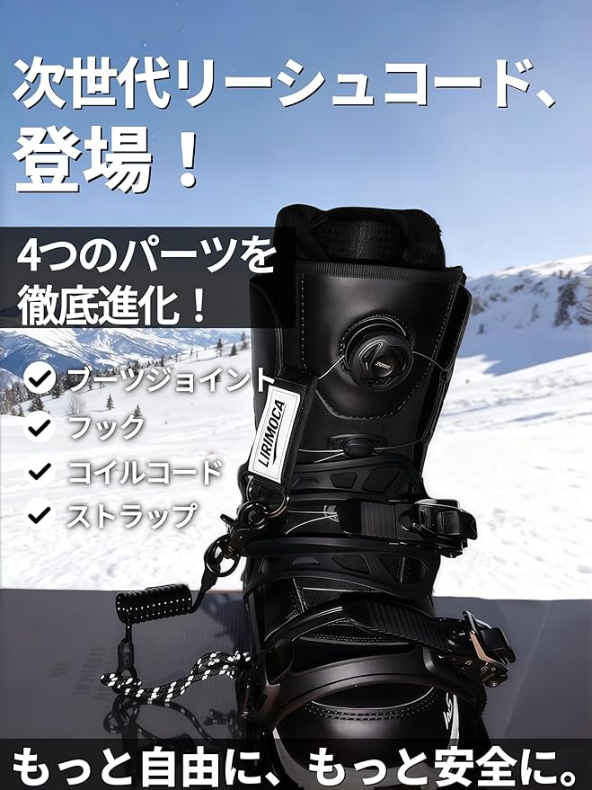 スノーボード リーシュコード 流れ止め 反射材 BOA対応 スノボ 伸縮コイル ブーツを傷めない 幅広設計 高耐久 耐寒