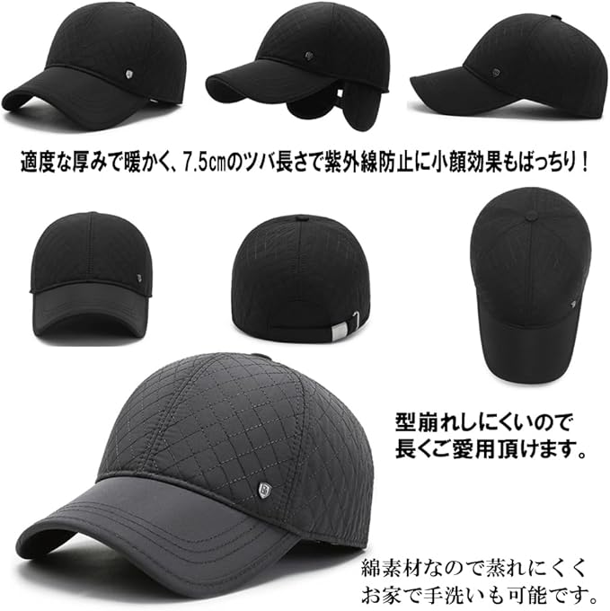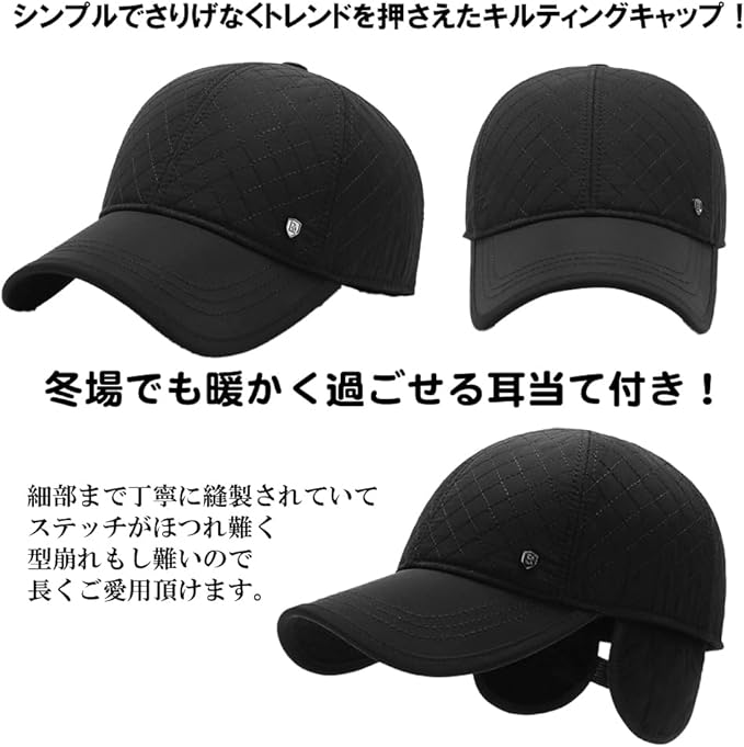 シンプルでさりげなくトレンドを押さえたキルティングキャップ。シンプルでさっと被るだけでサマになり、冬場でも暖かく過ごせる耳当て付きで実用性も抜群です。