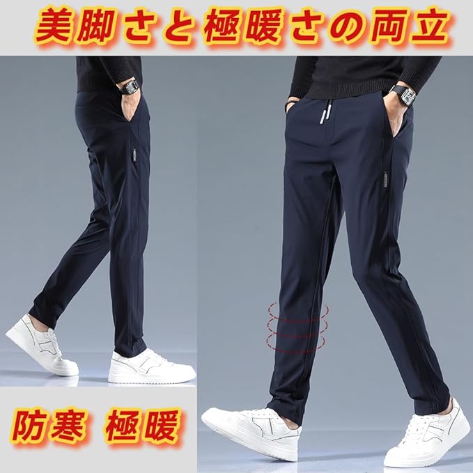 [ROOKMZU] 裏起毛パンツ メンズ 防寒ズボン ゴルフウェア メンズ 冬 厚手 ストレッチ 美脚 カジュアル 細身 暖かい テーパード 寒さ対策 防風 温かい 極暖 ボトムス 冬用ズボン 秋服 冬服 | etshop