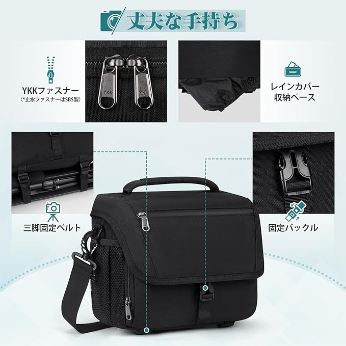 NEWHEY カメラバッグ 防水 カメラケース 一眼レフカメラ適用 ショルダーバッグ 仕切り調整可 レインカバー付き アウトドア 旅行 撮影 山登り ブラック