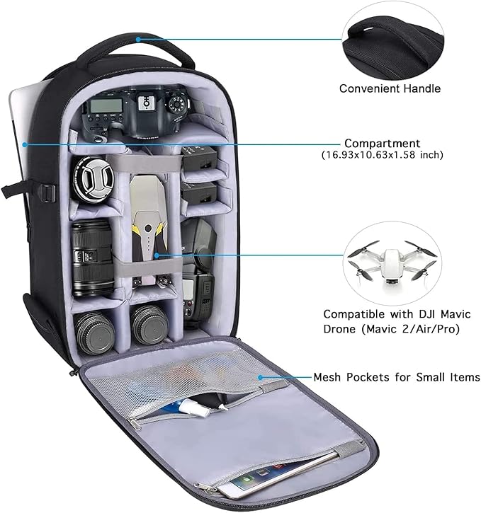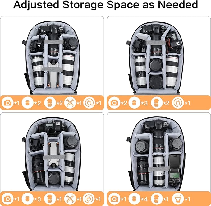 【対応機種】この多機能カメラバッグはDSLR / SLR / ミラーレスカメラ用に専門的に設計されています。対応機種Nikon D5600、D5300、D3500、D3400、D3300、D3200、対応機種Canon EOS Rebel T6、T6i、SL2と他のDSLRsのスタンダードサイズ。また、対応機種 DJI Mavic Drone(Mavic 2/Air/Pro)。