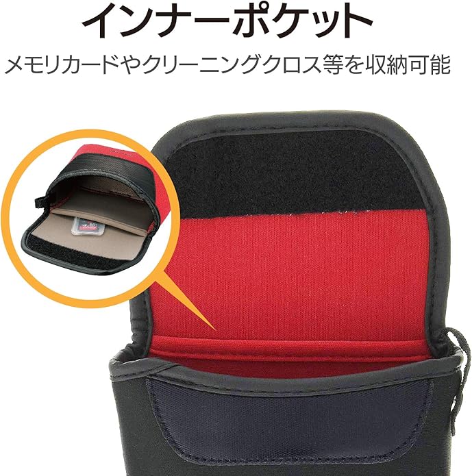 ●ソフトタイプのデジタルカメラケース“GRAPH GEAR”です●ウェットスーツなどに使用されるクッション性の高い伸縮素材を使用しています。●カメラのストラップをケースに留めることができるストラップホールドを装備しています。●素早い出し入れが可能な面ファスナーを、フタの開閉部に採用しています。●衣類にひっかかりにくく、開閉時の音も静かな、ソフトタイプの面ファスナーを採用しています。●ケース内側の大きなポケットには、メモリカードやクリーニングクロス等を収納できます。●ベルトに付けて持ち歩きが出来る、ベルトループを採用しています。●ケースの表と裏で色が違うおしゃれなツートーンカラーです。