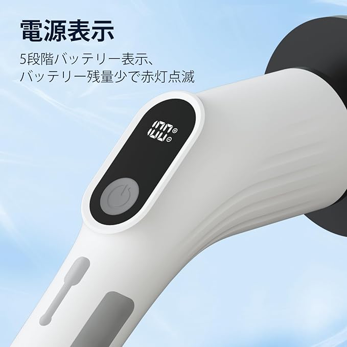 電動お掃除ブラシ バスポリッシャー お風呂掃除 ブラシ 長さ伸縮可能 手持ち式 IPX7防水 8種類の多機能ブラシ付 大容量4000mAhバッテリー 残量表示機能付き 軽量 コードレス 浴槽磨き 車掃除 トイレ掃除 床 窓 壁 玄関掃除 年末大掃除