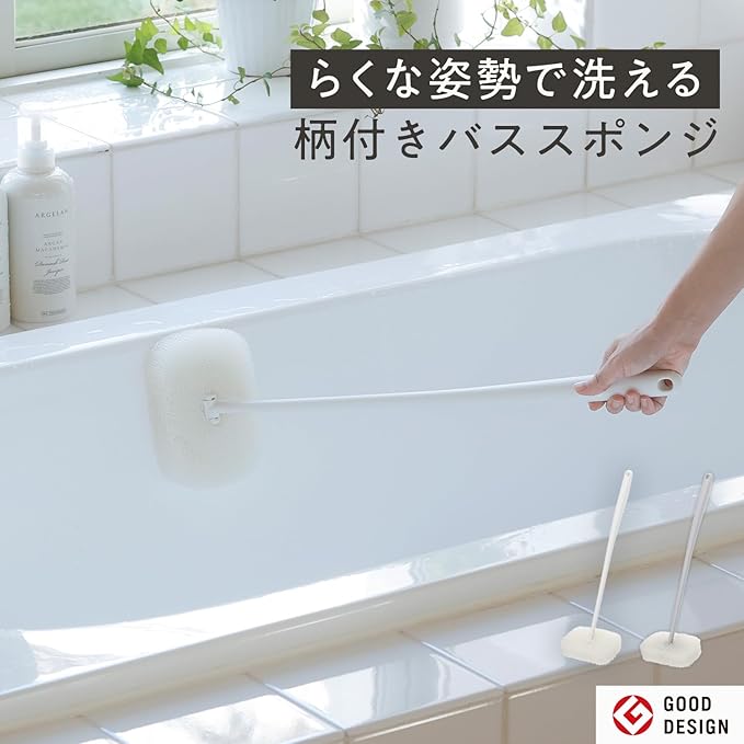 【柄付きでラクラクお風呂掃除】GOOD DESIGN賞受賞(※)。スポンジは水切れよく、清潔速乾。手あたりの良い長めの柄付きで、ラクな姿勢でバスタブが洗えます。※2018年受賞