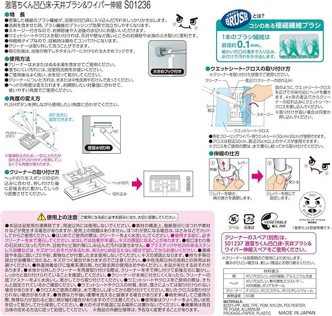 レック 激落ちくん 浴室用 凹凸床 ・ 天井 ブラシ & 水切りワイパー (伸縮タイプ)