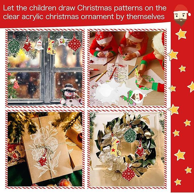 【DIYクリスマスオーナメント】 このDIYアクリルオーナメントは空白で透明なスタイルでデザインされています。想像力を最大限に活用して表面をDIYし、装飾として吊るし、フェスティバルの雰囲気を作り出します。